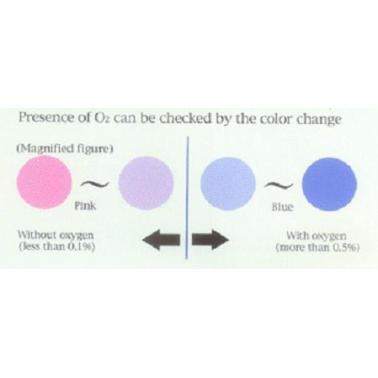 | 氧气指示剂:无氧状态(O2<0.1%):浅紫色到粉红色;有氧状态(O2>0.5%):淡蓝色到深蓝色。用于检测氧气的存在,可重复使用次4-5。 |